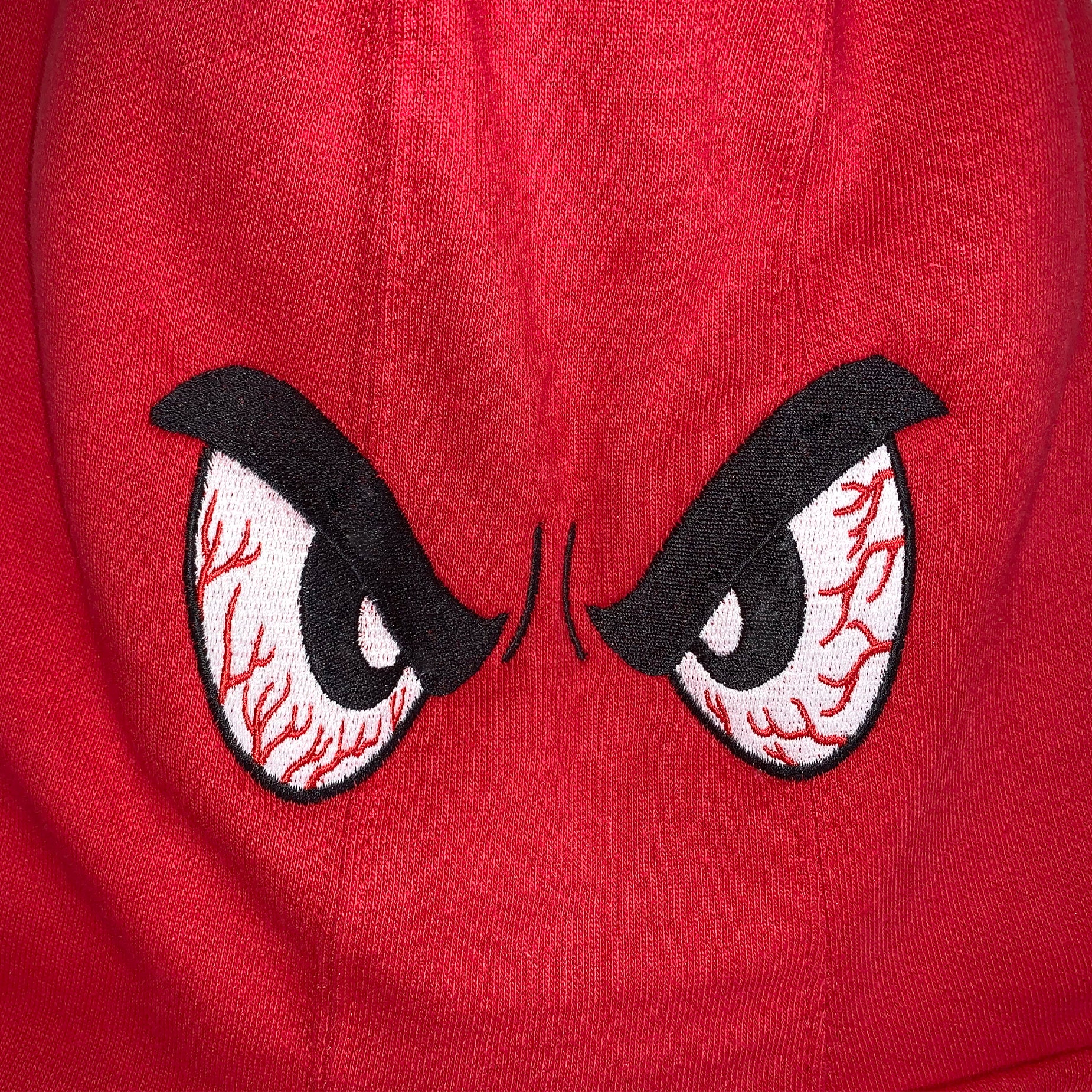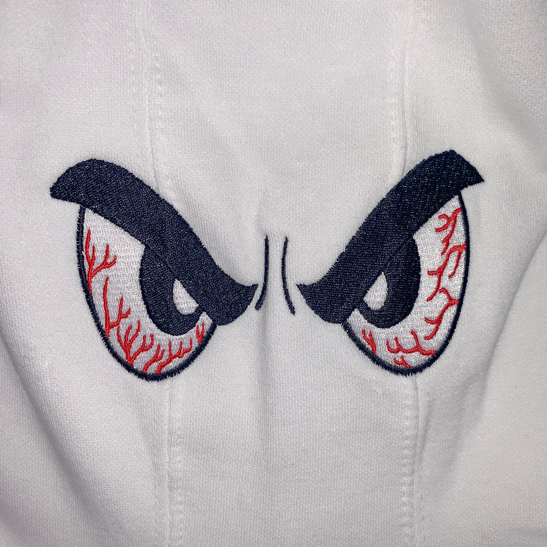 Custom embroidered eyes on the hood